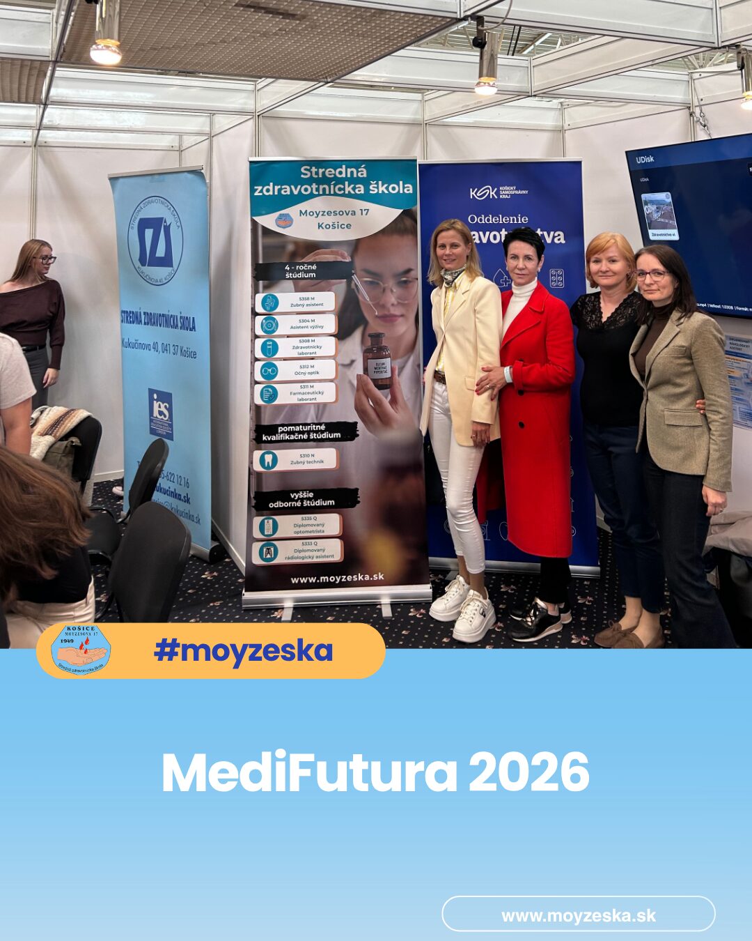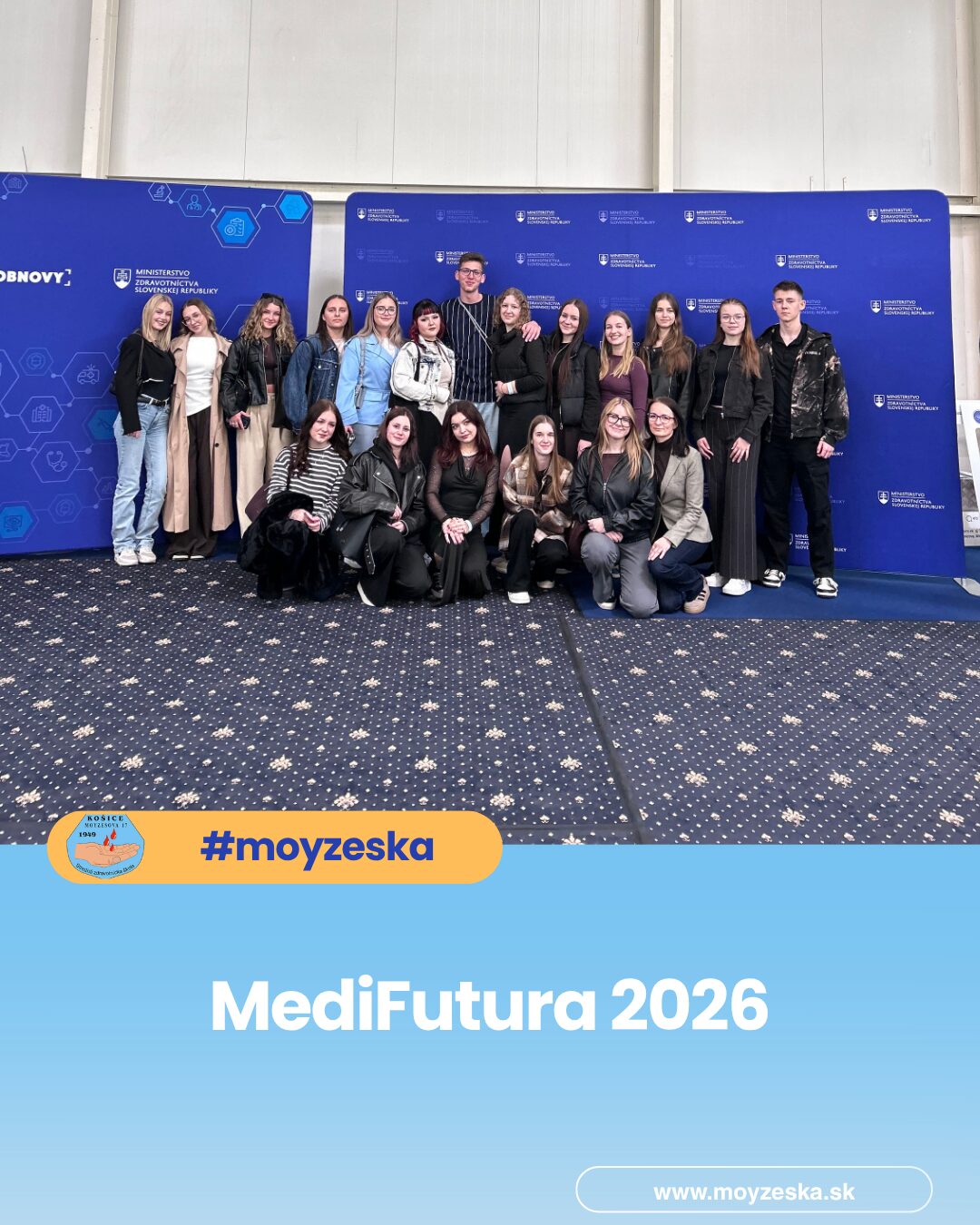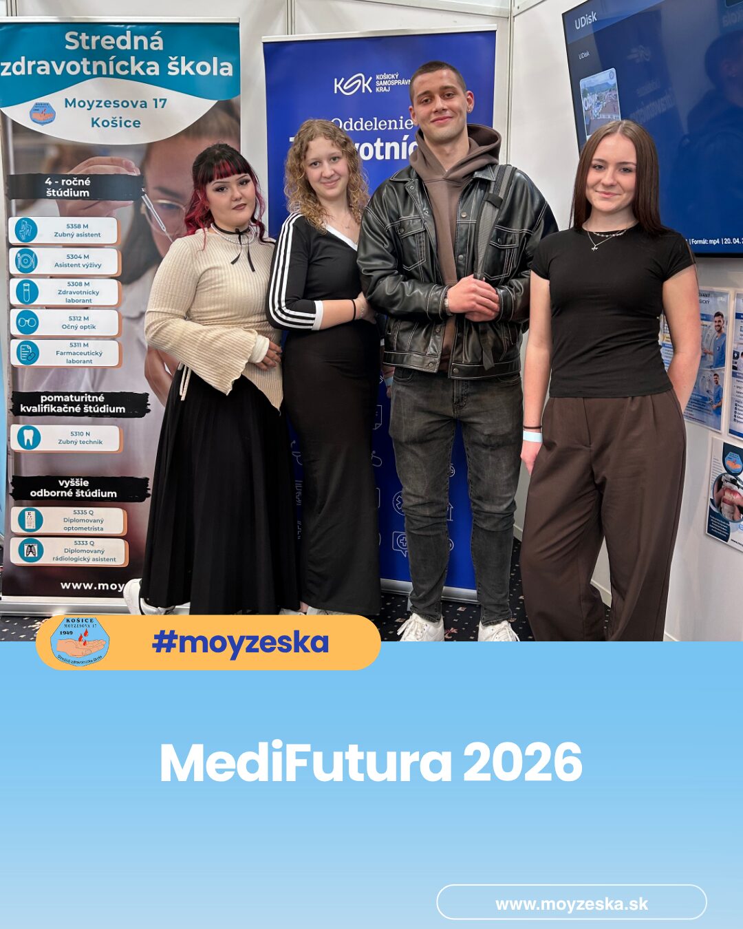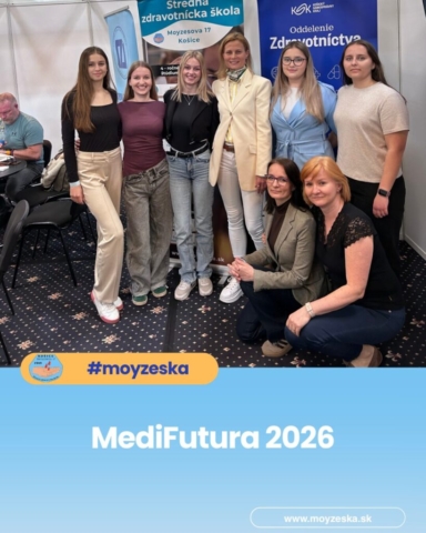 19 žiakov našej školy sa zúčastnilo významného odborného podujatia MediFutura 2026 – Sme jeden tím, ktoré sa uskutočnilo 23. apríla 2026 v Incheba Expo Bratislava. Podujatie bolo zamerané na prezentáciu budúcnosti zdravotníctva ako tímovej a prepojenej spolupráce odborníkov z rôznych oblastí. Hlavnou časťou našej účasti bola návšteva odborného veľtrhu, ktorý sa rozprestieral na ploche takmer 10 000 m² a predstavil viac ako 100 vystavovateľov z celého zdravotníckeho sektora – od štátnych a súkromných nemocníc, špecializovaných pracovísk a laboratórií až po vzdelávacie inštitúcie, poisťovne a kúpele. Zároveň sme mali možnosť aktívne sa prezentovať a predstaviť verejnosti naše pomaturitné vzdelávacie odbory – zubný technik a diplomovaný rádiologický asistent. Návštevníkom sme priblížili obsah štúdia, možnosti uplatnenia a význam týchto profesií v modernom zdravotníctve. MediFutura ponúkla aj odborné diskusie na šiestich pódiách, workshopy, interaktívne ukážky a výstavnú zónu, vďaka ktorým mohli žiaci zažiť zdravotníctvo v praxi a lepšie porozumieť aktuálnym potrebám trhu práce. Podujatie vytvára dôležitý most medzi vzdelávaním a reálnym prostredím zdravotníckych zariadení a motivuje mladých ľudí zostať pracovať v zdravotníctve na Slovensku. Účasť na MediFuture 2026 bola pre našich žiakov podnetnou a inšpiratívnou skúsenosťou. Potvrdila význam kvalitného vzdelávania, spolupráce a budovania vzťahov medzi školami a zdravotníckou praxou. MediFutura tak nie je len veľtrhom, ale investíciou do budúcnosti zdravotníctva a kvalitnej zdravotnej starostlivosti pre všetkých.