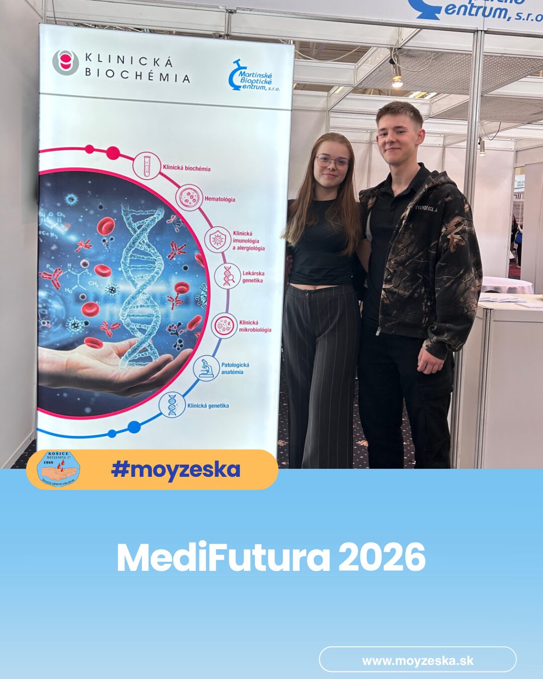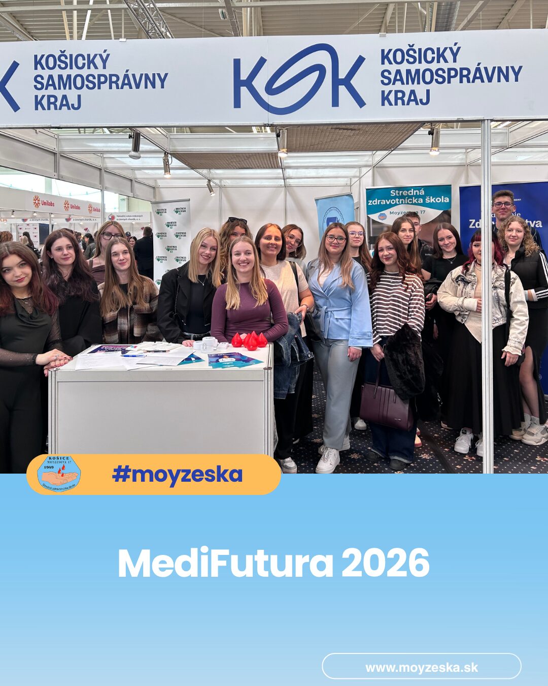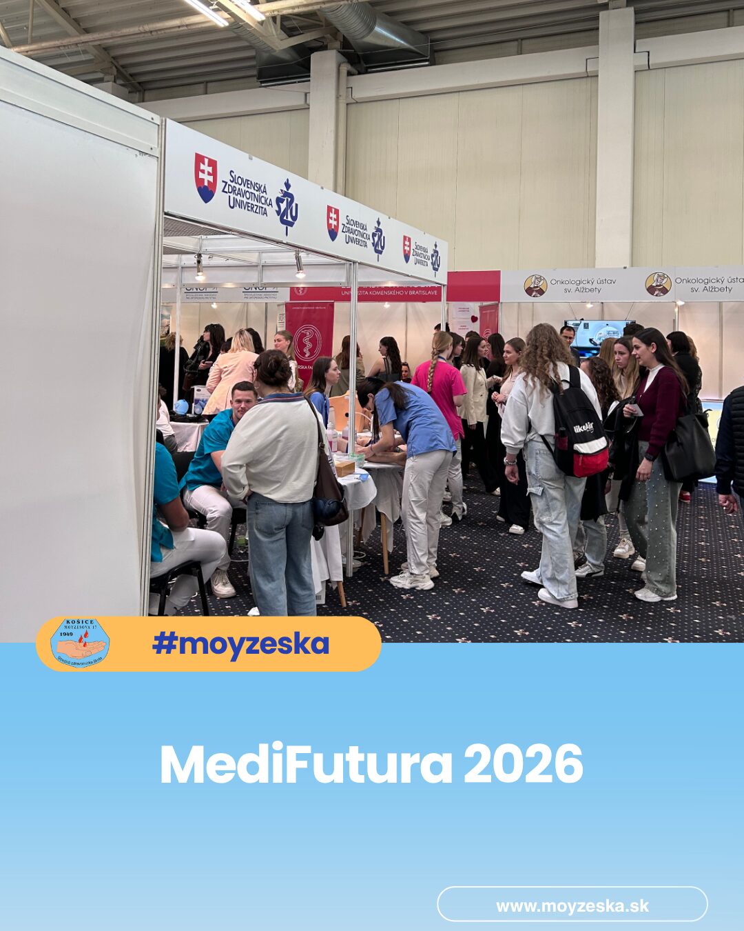 19 žiakov našej školy sa zúčastnilo významného odborného podujatia MediFutura 2026 – Sme jeden tím, ktoré sa uskutočnilo 23. apríla 2026 v Incheba Expo Bratislava. Podujatie bolo zamerané na prezentáciu budúcnosti zdravotníctva ako tímovej a prepojenej spolupráce odborníkov z rôznych oblastí. Hlavnou časťou našej účasti bola návšteva odborného veľtrhu, ktorý sa rozprestieral na ploche takmer 10 000 m² a predstavil viac ako 100 vystavovateľov z celého zdravotníckeho sektora – od štátnych a súkromných nemocníc, špecializovaných pracovísk a laboratórií až po vzdelávacie inštitúcie, poisťovne a kúpele. Zároveň sme mali možnosť aktívne sa prezentovať a predstaviť verejnosti naše pomaturitné vzdelávacie odbory – zubný technik a diplomovaný rádiologický asistent. Návštevníkom sme priblížili obsah štúdia, možnosti uplatnenia a význam týchto profesií v modernom zdravotníctve. MediFutura ponúkla aj odborné diskusie na šiestich pódiách, workshopy, interaktívne ukážky a výstavnú zónu, vďaka ktorým mohli žiaci zažiť zdravotníctvo v praxi a lepšie porozumieť aktuálnym potrebám trhu práce. Podujatie vytvára dôležitý most medzi vzdelávaním a reálnym prostredím zdravotníckych zariadení a motivuje mladých ľudí zostať pracovať v zdravotníctve na Slovensku. Účasť na MediFuture 2026 bola pre našich žiakov podnetnou a inšpiratívnou skúsenosťou. Potvrdila význam kvalitného vzdelávania, spolupráce a budovania vzťahov medzi školami a zdravotníckou praxou. MediFutura tak nie je len veľtrhom, ale investíciou do budúcnosti zdravotníctva a kvalitnej zdravotnej starostlivosti pre všetkých.