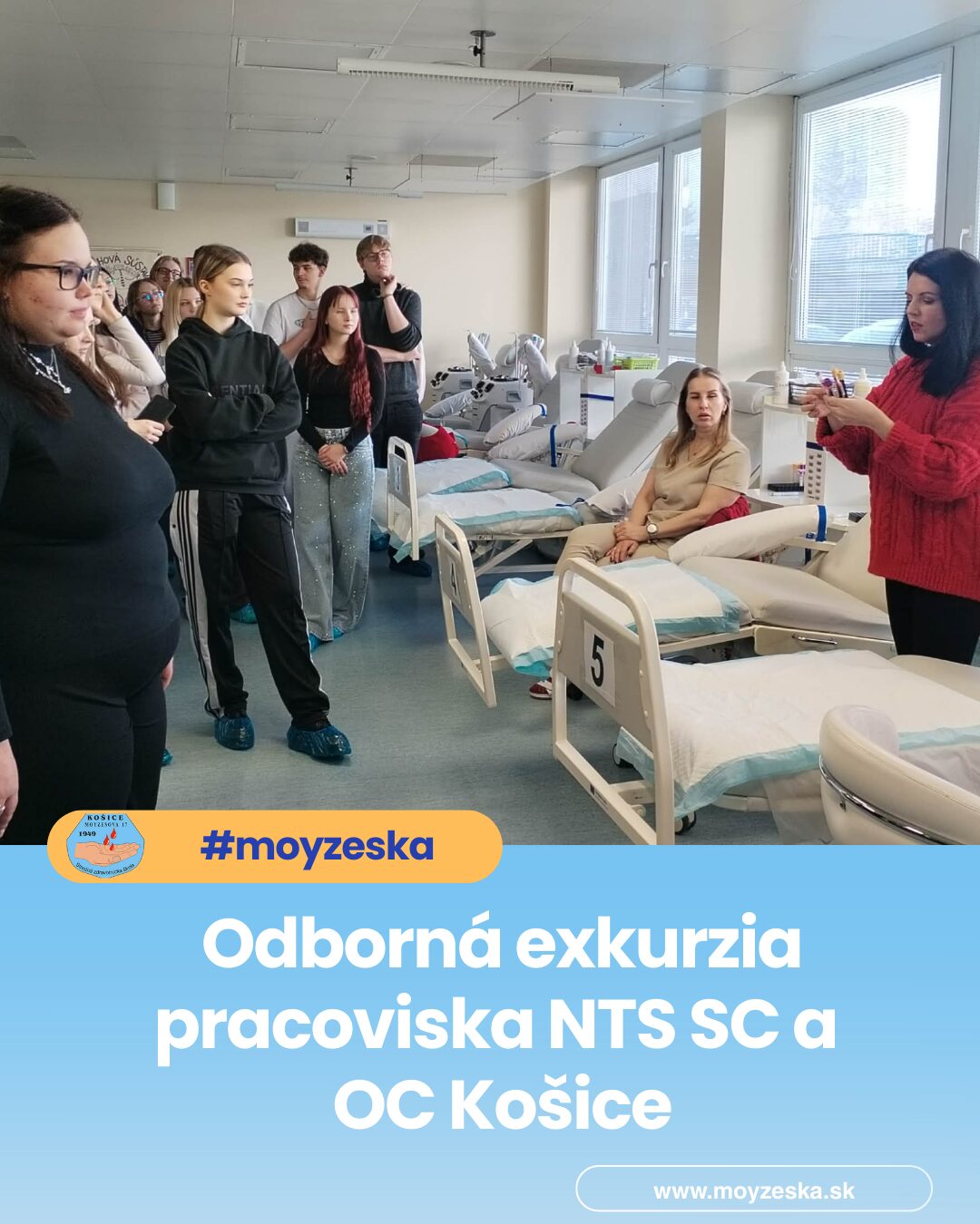 Žiaci maturitného ročníka odboru zdravotnícky laborant sa zúčastnili dňa 26. 2. 2026 odbornej exkurzie na pracovisku NTS SC a OC Košice, kde mali jedinečnú príležitosť nahliadnuť do reálnej praxe transfúziologického pracoviska.